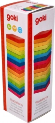 Der Balancier-Turm von GOKI bringt den klassischen Nervenkitzel in modernem Regenbogen-Design. Jede Etage besteht aus drei farbigen Holzplättchen, die zu einem stabilen Turm gestapelt und anschließend nacheinander vorsichtig an die Spitze versetzt werden. Ziel ist es, die Balance so lange wie möglich zu halten.