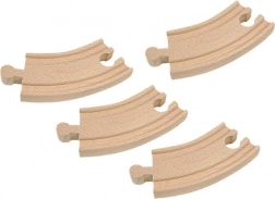 Dieses Set aus 4 kurzen gebogenen Schienen ist eine großartige Ergänzung für jede Holz-Eisenbahn. Dank der Länge von 10 cm pro Teil gestalten Sie mühelos kompakte Bögen, Verbindungen und neue Streckenlayouts. Die Schienen lassen sich intuitiv verbinden und eignen sich für kleine Baumeister ab 3 Jahren.