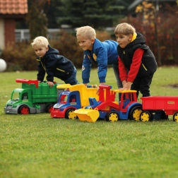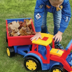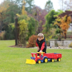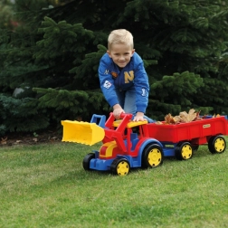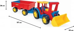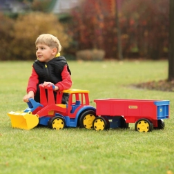 Der gigantische Traktor mit Frontlader und Anhänger bietet jede Menge realistischen Spielspaß beim Bauen, Laden und Transportieren. Die 117 cm lange, robuste Konstruktion hält intensivem Kinderspiel stand, während die funktionale Schaufel und der Anhänger mit aufklappbarer Heckklappe jede Aktion im Sandkasten zu einem echten Einsatz machen.