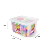Die transparente Kunststoffbox mit Schnappdeckel hält die Bausteine beisammen, erleichtert das Aufräumen und sorgt für Überblick über den Inhalt.