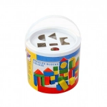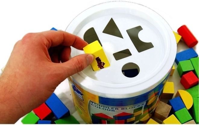 Die Holzbausteine im Eimer mit Formensortierer sind ein ideales Spielzeug für kleine Kinder. Das Set enthält Bausteine in verschiedenen Formen und Farben, die die Feinmotorik und die Fähigkeit, Formen zu erkennen, fördern. Der praktische Eimer mit Deckel und ausgestanzten Formen ermöglicht einfaches Verstauen und gleichzeitig das Sortieren der Bausteine nach Form.