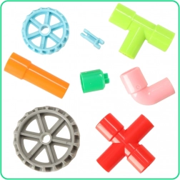 - Das Set enthält Räder, die es ermöglichen, Fahrzeuge zu bauen.