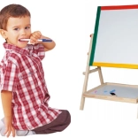 Diese variable Tafel für Kinder ist ideal zur Förderung ihrer kreativen Fähigkeiten und lehrreichen Aktivitäten. Mit einem robusten Holzrahmen und bunten Elementen ist die Tafel nicht nur praktisch, sondern auch ästhetisch ansprechend.