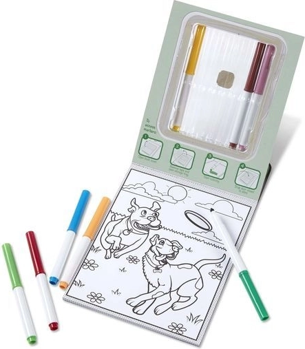 Dieses magische Ausmalbuch mit Haustiermotiven begeistert kleine Künstlerinnen und Künstler. Beim Befeuchten des Spezialpapiers erscheinen leuchtende Farben und die Bilder erwachen zum Leben – ganz ohne Flecken klassischer Farben. Nach dem Trocknen verschwinden die Farben und das Kind kann immer wieder neu malen.