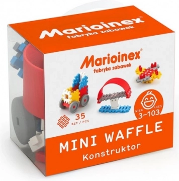 Mini-Bausatz Waffel mit 35 Elementen, der neue Konstruktionsmöglichkeiten bietet. Sicheres und ruhiges Material geeignet für Kinder, mit innovativer Fertigungstechnologie, die Flexibilität ermöglicht.