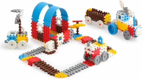 Kinder können neue Bauwerke in kleinerem Format im Vergleich zu den Standard-Waffelklötzen erstellen, was Platz spart. Durch die neue Fertigungstechnologie können die Teile gebogen werden, sind geräuschlos und sicher für das Spielen.