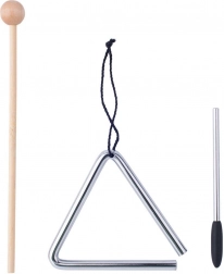Eine metallene Triangel mit Schlägel erzeugt einen klaren, durchdringenden Ton, der den Rhythmus hervorragend führt. Sie lehrt Kinder präzise Schläge und ein Gefühl für Dynamik.