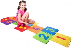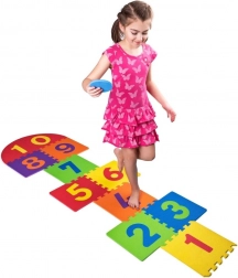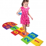 Das Hüpfen über nummerierte Felder und das Werfen der Ringe fördern Gleichgewicht, Koordination, Geschicklichkeit und das Zahlenverständnis.