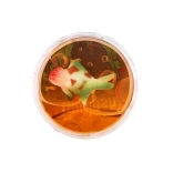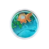 Kompakte transparente Dose mit realistisch aussehendem Fisch und dekorativen Elementen für visuelles Vergnügen.