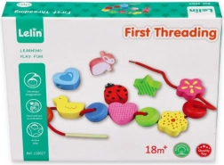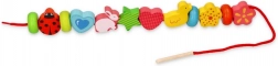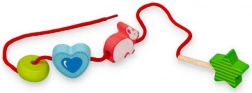 Textilschnur mit Holzenden zum einfachen Auffädeln, fördert die Feinmotorik.