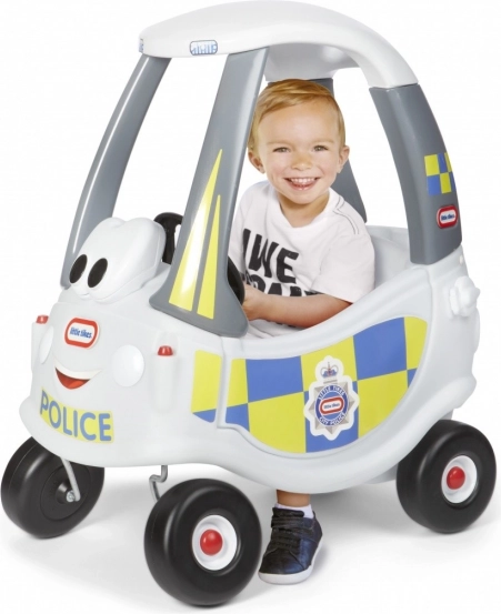 Blau-gelbe Schachbrettmuster, Polizeiwappen und ein freundliches Gesicht machen jede Fahrt zur actionreichen Streife und fördern die kindliche Vorstellungskraft.