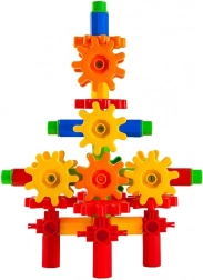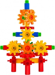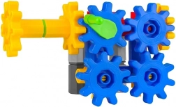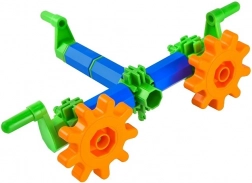 Das Bauset enthält spezielle Zahnräder, die Drehungen und Bewegungen der Konstruktionen ermöglichen und die mechanischen Fähigkeiten fördern.