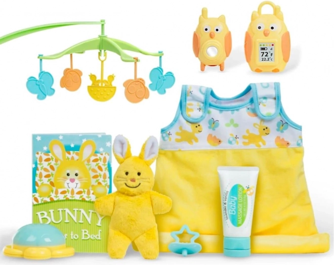 Das Set zum Einschläfern von Puppen und Plüschtieren ist das perfekte Zubehör für Kinder, die Rollenspiele lieben und sich um ihre Spielzeuge kümmern. Es enthält verschiedene Elemente, die helfen, die kindliche Fantasie und feinmotorische Fähigkeiten zu entwickeln.
