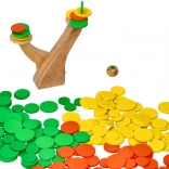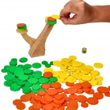 Kinder genießen das Spiel, indem sie die Scheiben strategisch auf die Baumkonstruktionen platzieren und dabei lernen, vorauszudenken und zu planen.