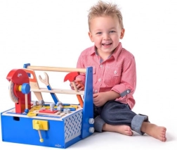 • Sicheres Training im Umgang mit Werkzeugen: Holzwerkzeuge wie Säge, Schlüssel und Hammer für sicheres Spielen.