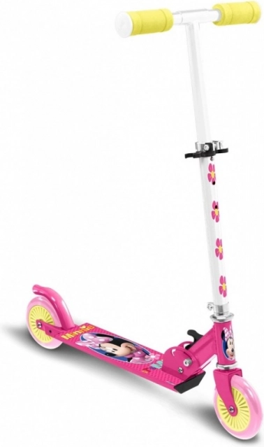 Der Roller besticht durch seine leuchtend rosa Farbe mit gelben Akzenten und hübschen Bildern von Minnie Mouse, die jedes Kind sofort in ihren Bann ziehen.