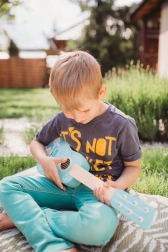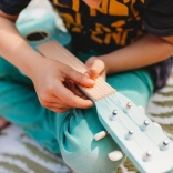 Mit sechs Saiten und funktionierenden Mechaniken probieren Kinder echtes Spielen und erste Akkorde aus – und das an einem sicheren Kinderinstrument.