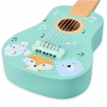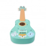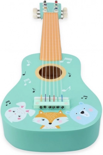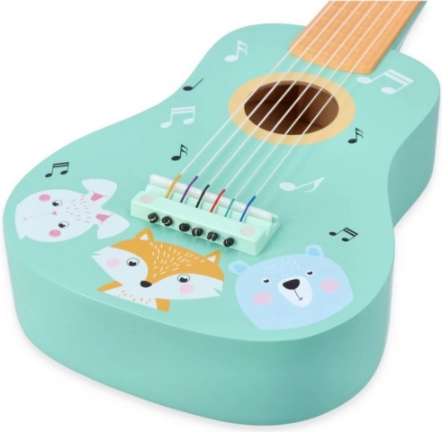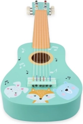 Diese Kinder-Gitarre/Ukulele mit fröhlichen Motiven von Häschen, Fuchs und Bär ist eine großartige Wahl als erstes Musikinstrument. Dank der kompakten Abmessungen und der leichten Bauweise liegt sie gut in kleinen Händen und ermutigt Kinder, Klänge und Rhythmen spielerisch zu entdecken.