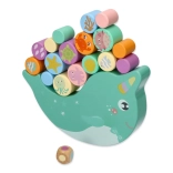 Entdecken Sie ein unterhaltsames Holz-Balancespiel mit einem Narwal, in dem Kinder bunt gestaltete Zylinder mit Meerestier-Motiven auf einer Wipp-Basis ausbalancieren. Ziel ist es, die Balance zu halten und die Teile so zu stapeln, dass der Narwal nicht kippt – ein großartiges Training für die Feinmotorik, die Hand-Auge-Koordination und die Geduld.