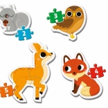 Dieses Set „Mein erstes Puzzle“ von CLEMENTONI ist die ideale Wahl für den ersten Kontakt von Kindern mit Puzzles. Fröhliche Illustrationen von Fuchs, Hirsch, Eule und Eichhörnchen in lebhaften Farben laden zum Puzzeln ein und fördern Konzentration und Geduld.