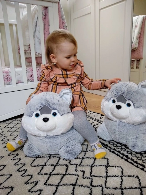 Dieses niedliche Husky-Plüschkissen ist der ideale Begleiter für Kinder jeden Alters. Dank des weichen und angenehmen Materials ist es perfekt zum Kuscheln oder als bequeme Sitzgelegenheit. Mit seinem universellen Design und den bezaubernden blauen Augen zieht es sofort alle Blicke auf sich.