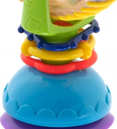 Der starke Saugnapf hält das Spielzeug auf glatten Oberflächen fest, sodass es nicht umkippt und sich das Kind ganz auf das Entdecken konzentrieren kann.