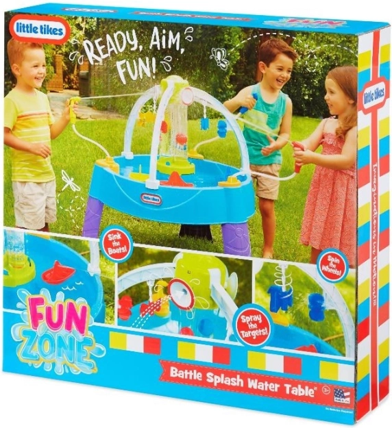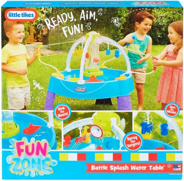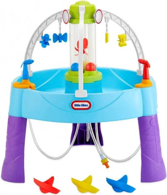 Wasserspieltisch bietet endlosen Spaß an heißen Sommertagen. Kinder können auf Ziele zielen, Zylinder mit Wasser füllen oder die Schiffe ihrer Gegner versenken.