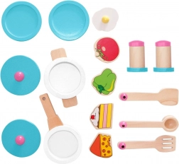 Topf, Pfanne, Deckel, Schöpflöffel, Salzstreuer, Pfefferstreuer und weitere Kleinteile verleihen dem Kochspiel Realismus und Abwechslung. Alles ist auf Kinderhände abgestimmt.