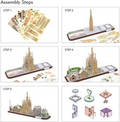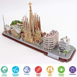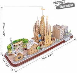 Das 3D-Puzzle City Line Barcelona bietet spannenden Spaß für Kinder und Erwachsene. City Line ist eine einzigartige Serie des Herstellers CubicFun, die die Skyline einer bestimmten Stadt zusammen mit ihren charakteristischsten Sehenswürdigkeiten zeigt. Die Packung enthält 186 Teile aus speziellem Schaumstoffmaterial. Die Puzzleteile sind nummeriert, ausgestanzt und auf Bögen angeordnet. Es genügt, das Teil ohne Kraftaufwand aus dem Bogen zu drücken und es gemäß der beiliegenden Anleitung ohne Klebstoff oder Spezialwerkzeuge zusammenzusetzen.