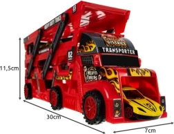 Der Transporter besteht aus hochwertigem Kunststoff, die Autos aus einer Kombination aus Metall und Kunststoff. Die intuitive manuelle Abschussvorrichtung ermöglicht Blitzstarts ohne Batterien. Die kompakten Abmessungen des Lkw (30 × 12 × 7 cm) und der Autos (7 × 2 × 3 cm) machen ihn zum idealen Spielzeug fürs Kinderzimmer und für unterwegs.