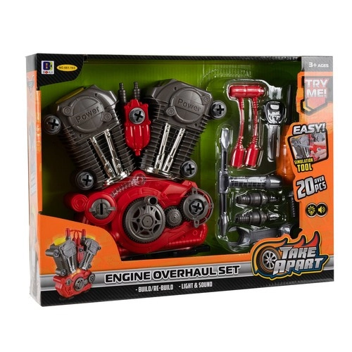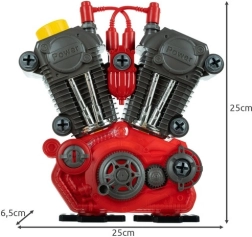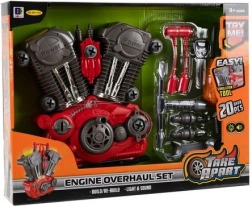 Dieses detailreich gestaltete Motor-Modell ist ideal für neugierige Kinder, die gerne schrauben und erforschen, wie Dinge funktionieren. Realistische Effekte – LED-Licht, Geräusch eines laufenden Motors und arbeitende Kolben mit rotierendem Riemen – machen das Spiel zu einem authentischen Erlebnis. Mit dabei ist auch ein Zündschlüssel, mit dem das Kind den Motor „startet“.