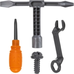 Enthalten sind ein Kinderschraubendreher, Schlüssel und Schrauben – alles Nötige für Montage und Demontage ist in der Box vorbereitet.