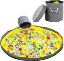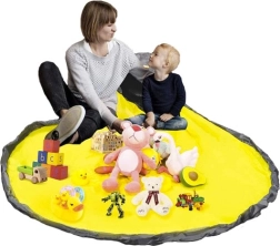 Breiten Sie die große Matte (Ø 135 cm) aus, lassen Sie die Kinder spielen und ziehen Sie nach dem Spielen einfach am Kordelzug mit Stopper – das Spielzeug verschwindet im Handumdrehen im Korb.