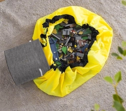 Machen Sie aus dem Aufräumen ein Spiel. Dieser Korb mit integrierter Spielmatte ermöglicht es Kindern, Bausteine, Puppen oder Autos auf einer großen Fläche zu verteilen und nach dem Spielen einfach am Kordelzug zu ziehen – alles verwandelt sich in wenigen Augenblicken in einen tragbaren Beutel. Wasserbeständige Materialien schützen das Spielzeug und der hohe Rand hält Kleinteile an Ort und Stelle.