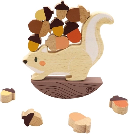 Das kecke Eichhörnchen rüstet sich für den Winter – trägt es alle Eicheln? Wechselt euch mit eurem Mitspieler ab und legt die Teile so, dass das Eichhörnchen auf seinem wackeligen Sockel nicht kippt. Einfache Regeln und Spannung bei jedem Zug machen dieses hölzerne Balancespiel zur idealen Wahl für Kinder ab 3 Jahren.