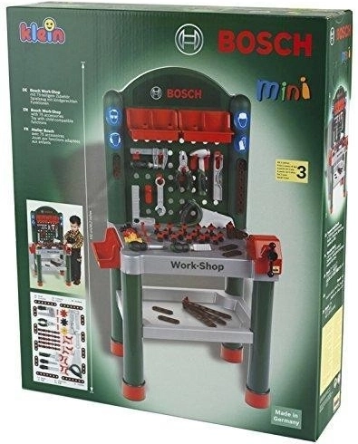 Diese robuste BOSCH-Werkbank ist eine detailgetreue Nachbildung einer echten Werkstatt, kindersicher gestaltet. Hochwertiger Kunststoff sorgt für Langlebigkeit und Robustheit, während die umfangreiche Werkausstattung zum Spielen und Lernen einlädt. Durch die durchdachte Aufbewahrung der Werkzeuge am Ständer und in Fächern erlernen Kinder leicht die Arbeitsorganisation.