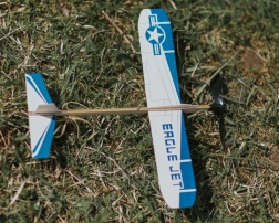Entdecken Sie die Freude am einfachen Fliegen mit dem Goki Eagle Jet. Die leichte Balsakonstruktion und der Gummimotor sorgen für stabilen Flug und einfache Handhabung. Einfach den Propeller mehrmals aufziehen, starten und den eleganten Gleitflug beobachten.