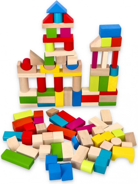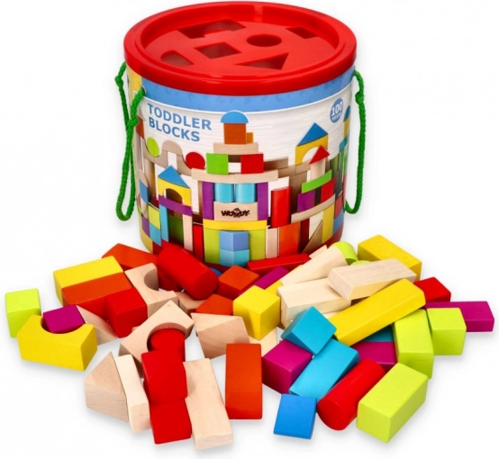 Genießen Sie stundenlangen Spaß mit diesem Set aus 100 bunten Holzbausteinen. Hervorragend geeignet zum Bauen verschiedener Strukturen und zur Förderung der Kreativität Ihrer Kinder. Unterschiedliche Formen und leuchtende Farben wie Rot, Blau, Grün und Gelb bieten unendliche Spielmöglichkeiten.