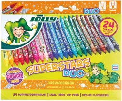 Fördern Sie die Kreativität von Kindern mit den doppelseitigen Filzstiften SUPERSTARS DUO. Das praktische 2-in-1-Design spart Platz im Federmäppchen und bietet Präzision und volle Deckkraft in einem Marker. Das Set aus 24 Farben ist ideal für Schulprojekte, Malbücher und kreatives Gestalten zu Hause.
