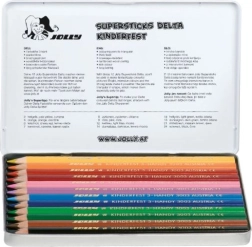 Entdecken Sie hochwertige dreikantige DELTA-Buntstifte in 12 leuchtenden Farbtönen. Die weiche Mine gleitet geschmeidig über das Papier, die Farben lassen sich gut schichten und schattieren und halten dank Bruchfestigkeit länger. Die Metallbox bewahrt die Stifte sicher und übersichtlich auf.