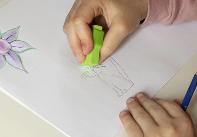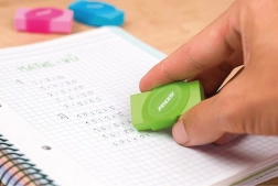 Die geformte Griffzone erhöht Komfort und Präzision. Der Radiergummi rutscht nicht in der Hand und das Radieren ist auch bei Kindern schnell und sicher.