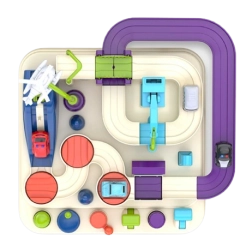 Bedientasten und Drehräder geben Kindern die Kontrolle über Hubplattformen, bewegliche Plattformen und die Brücke. Das Spiel fördert Planung und Entscheidungsfindung – kleine Rennfahrer müssen überlegen, wie sie die Strecke am besten meistern und Fallen überwinden.