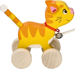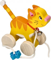 Dieses niedliche Katzen-Holzzugspielzeug ist ein ideales Spielzeug zur Förderung der motorischen Entwicklung und des Gleichgewichts von Kleinkindern. Es ist mit einem Glöckchen ausgestattet, das beim Bewegen sanft klingelt, was die Attraktivität des Spielzeugs erhöht.