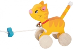Das Ziehen der Katze stärkt die motorischen Fähigkeiten und das Gleichgewicht des Kindes beim Gehen.