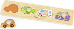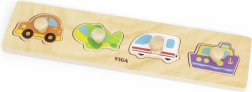 Fröhliche Farben und klare Konturen fördern die visuelle Wahrnehmung und den Wortschatz – das Kind erkennt Auto, Schiff, Flugzeug und Wohnmobil und lernt, sie zu benennen. Die hochwertige Holzverarbeitung gewährleistet eine lange Lebensdauer und sicheres Spielen.