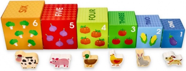 Entdecken Sie spielerische und lehrreiche Stapelkuben mit Bauernhoftieren, die Feinmotorik, Hand-Auge-Koordination und logisches Denken fördern. Der Turm erreicht eine Höhe von bis zu 57,5 cm und der größte Würfel misst 12 × 12 cm – ideal für die ersten Bauversuche und zum Lernen über das Leben auf dem Bauernhof.
