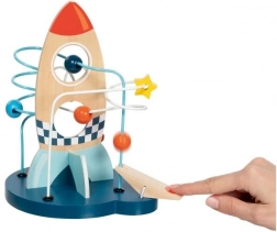 Das Verschieben der Perlen entlang der Drahtbahnen trainiert den Griff, die Hand-Auge-Koordination und die Geduld von Kindern ab 12 Monaten.