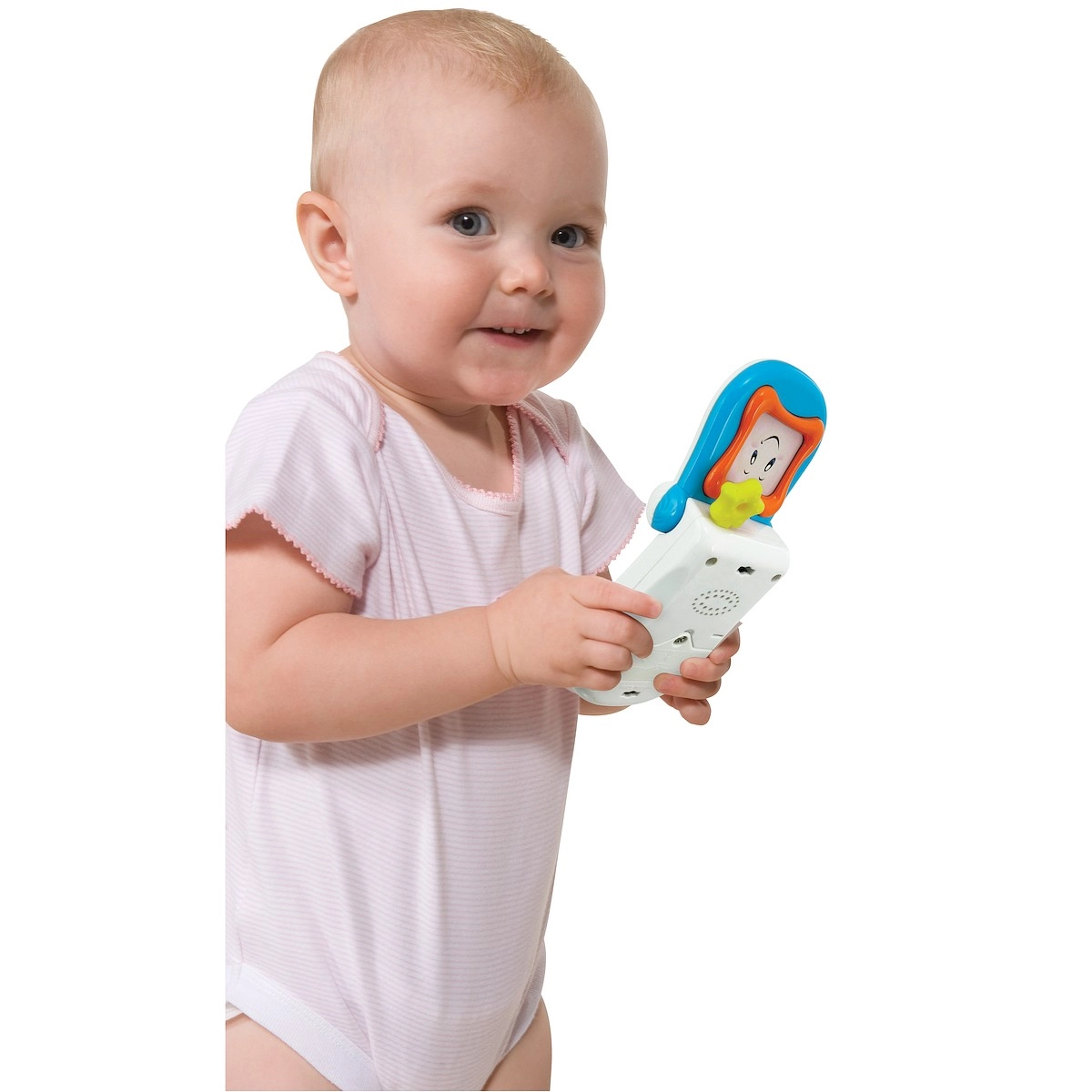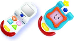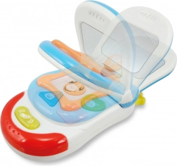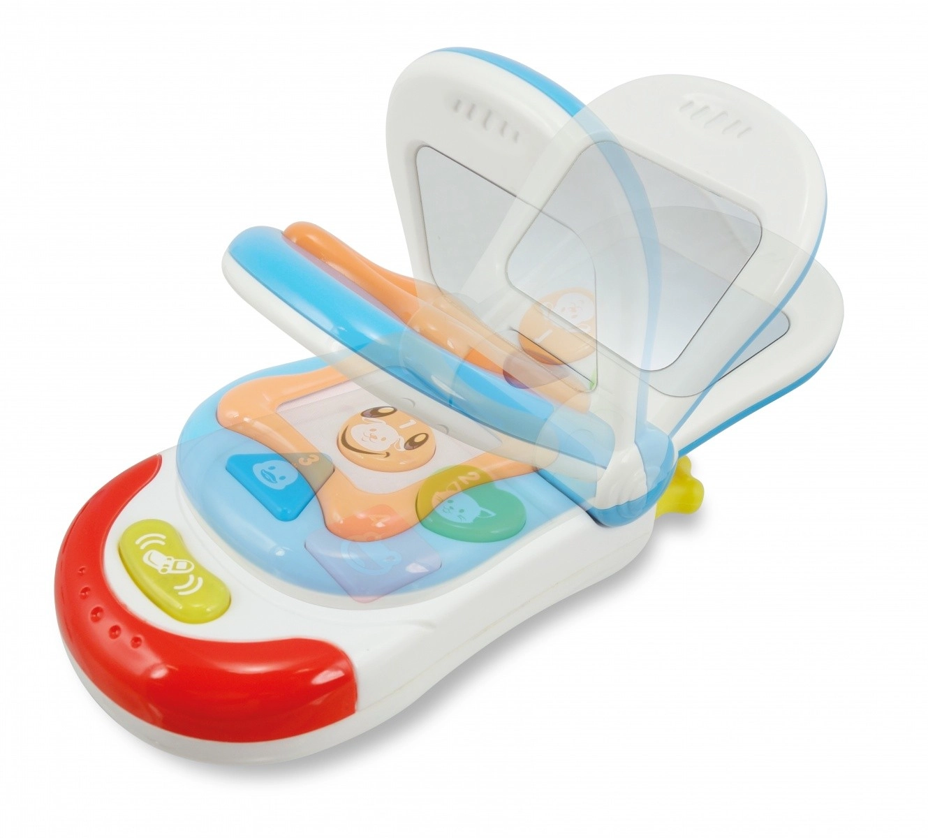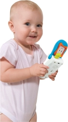 Das lächelnde Telefon ist ein aktives Spielzeug, das Kinder lange fesselt. Dank der beweglichen Klappe, fröhlichen Melodien und blinkenden Lichtern fördert es Gehör, Sehsinn und die Feinmotorik. Beim Öffnen der Klappe erscheint ein sicherer Spiegel für lustige Grimassen und das Entdecken des eigenen Spiegelbilds.