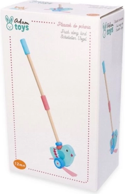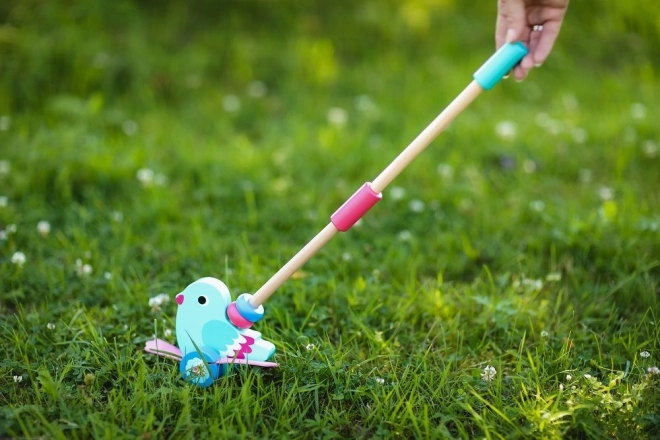Dieser wunderschöne Holzvogel zum Schieben ist so gestaltet, dass er Kindern ab 12 Monaten hilft, ihre motorischen und gleichgewichtigen Fähigkeiten zu entwickeln. Dank des abnehmbaren Stabs, der 48 cm lang ist, lässt sich das Spielzeug leicht schieben und handhaben. Der Gesamtdesign kombiniert einen türkisen Körper und rosa Flügel, was die kindliche Fantasie und Farbensinn anregt.