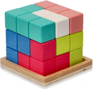Der Puzzle-Würfel hilft Kindern, die Feinmotorik zu entwickeln und ihre Problemlösungsfähigkeit zu erhöhen. Mit leuchtenden Farben wie Blau, Orange, Pink und naturbelassenem Holz bietet dieses Spielzeug nicht nur Spaß, sondern auch Bildung.